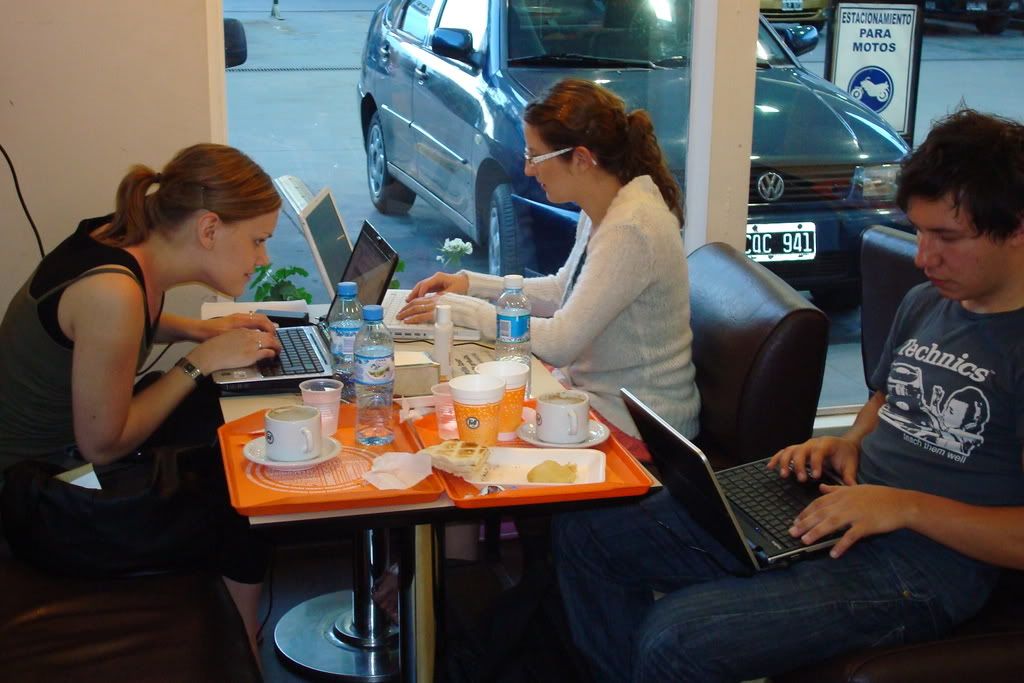 I lördags var det bröllop på vår bakgård, det var mycket, fint, intressant och trevligt att vara med på. Det var perfekt väder och lagom varmt hela natten så jag satt och njöt under de argentinska traditionella dansuppvisningarna som pågick i stort sett hela natten. Man satt vid runda bord om tio personer på varje, borden och stolarna var fint dekorerade med vita tyger med gulddetaljer till. Vi tolv gav vi upp för natten och gick in till oss eftersom vi skulle bli hämtade av Cornelio och Estella halv 7 morgonen efter. Vi hade dock inte stora förhoppningar på skönhetssömnen den natten då hela huset var omringat av bröllopsgäster och högtalarna stod precis vid mitt sovrumsfönster. Det gladde oss när jag inte hann mer än att sminka av mig förrän bröllopet var slut, musiken slutade spela och gästerna gav sig iväg en efter en.